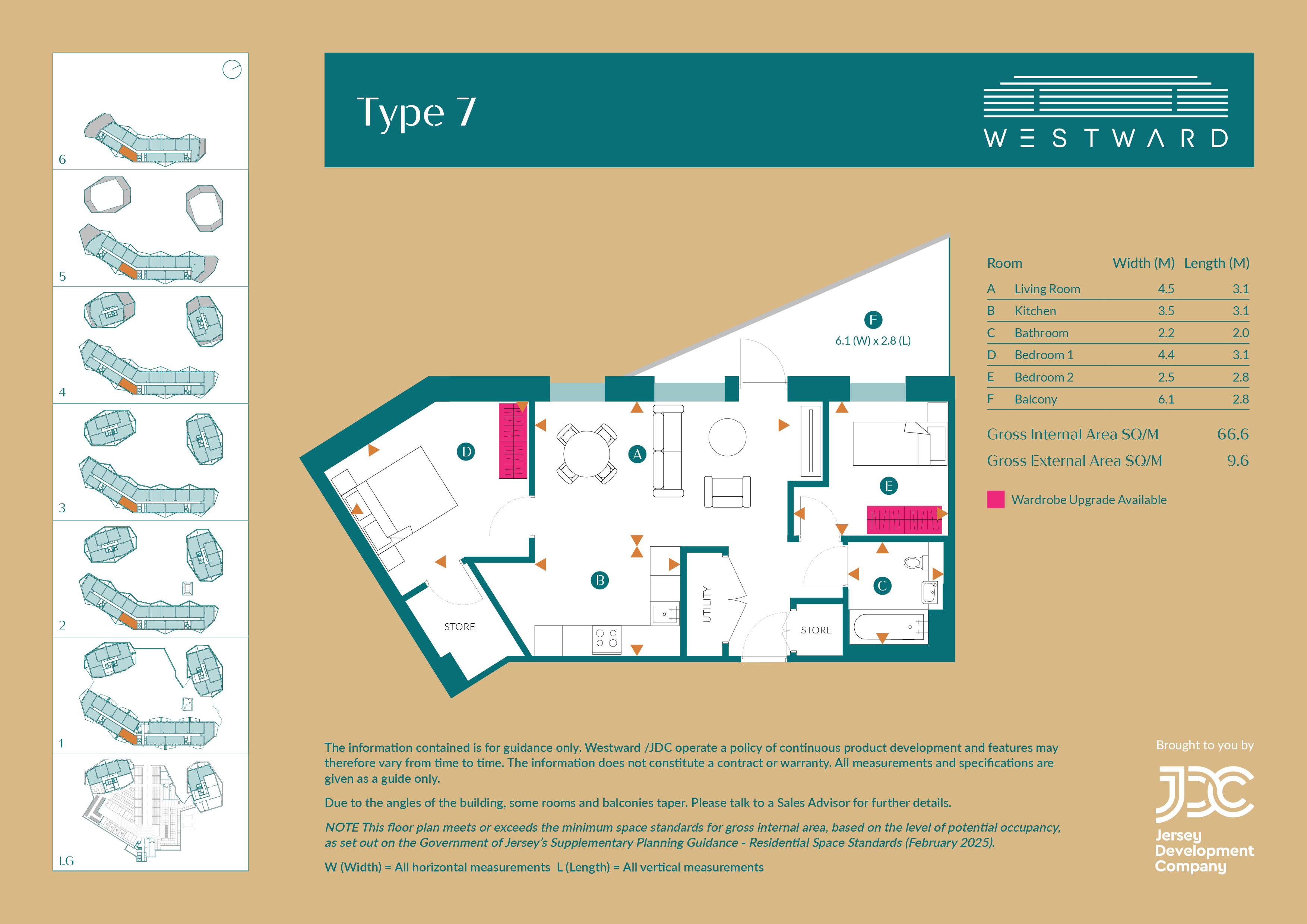 Type 7 is a well-planned two-bedroom apartment offering a practical layout and a calm, natural outlook from its position at the rear of the development. The open-plan kitchen, dining and living space opens onto a 9.7m² private balcony — ideal for relaxing or entertaining outdoors.