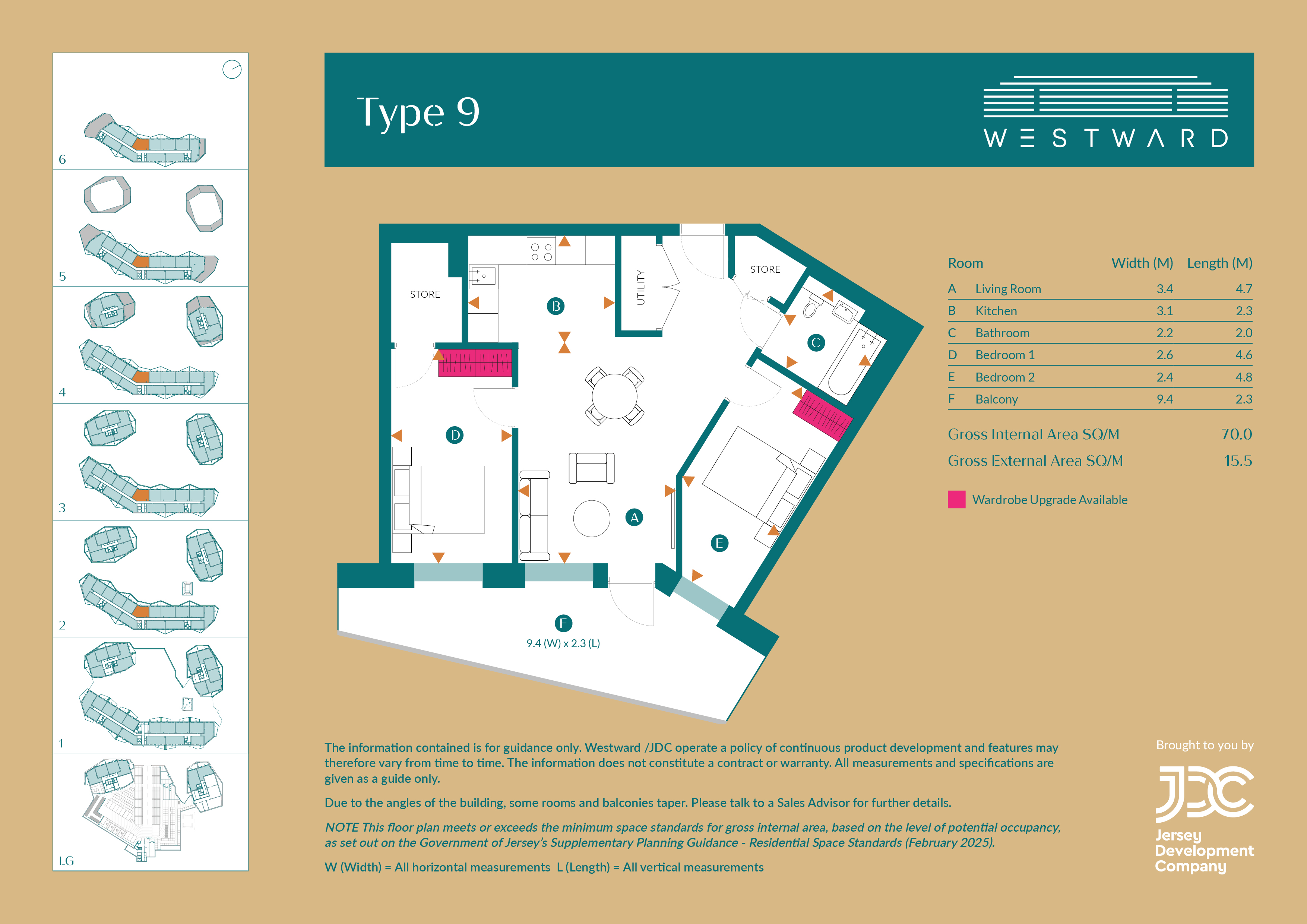 Type 9 is a well-proportioned two-bedroom apartment offering a comfortable and flexible layout with views towards the marina. The open-plan kitchen, dining and living area opens onto a generous 15.8m² private balcony — ideal for outdoor dining or simply enjoying the outlook.