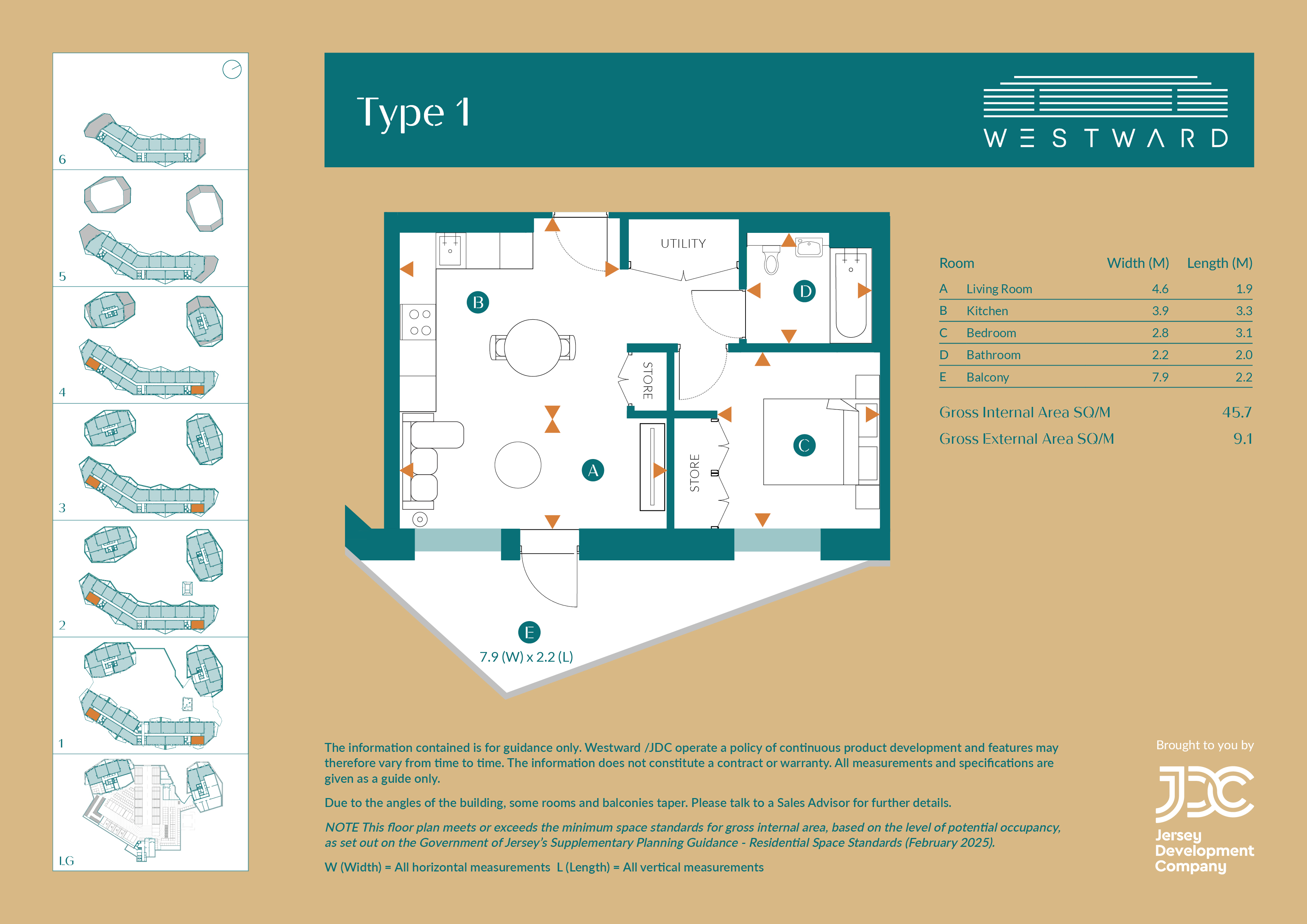The bedroom fits a double bed and features a built-in wardrobe space. A stylish bathroom, with premium fittings and soft, neutral tones, adds a touch of everyday luxury. A dedicated utility/storage cupboard provides additional practicality, all within a highly efficient footprint.