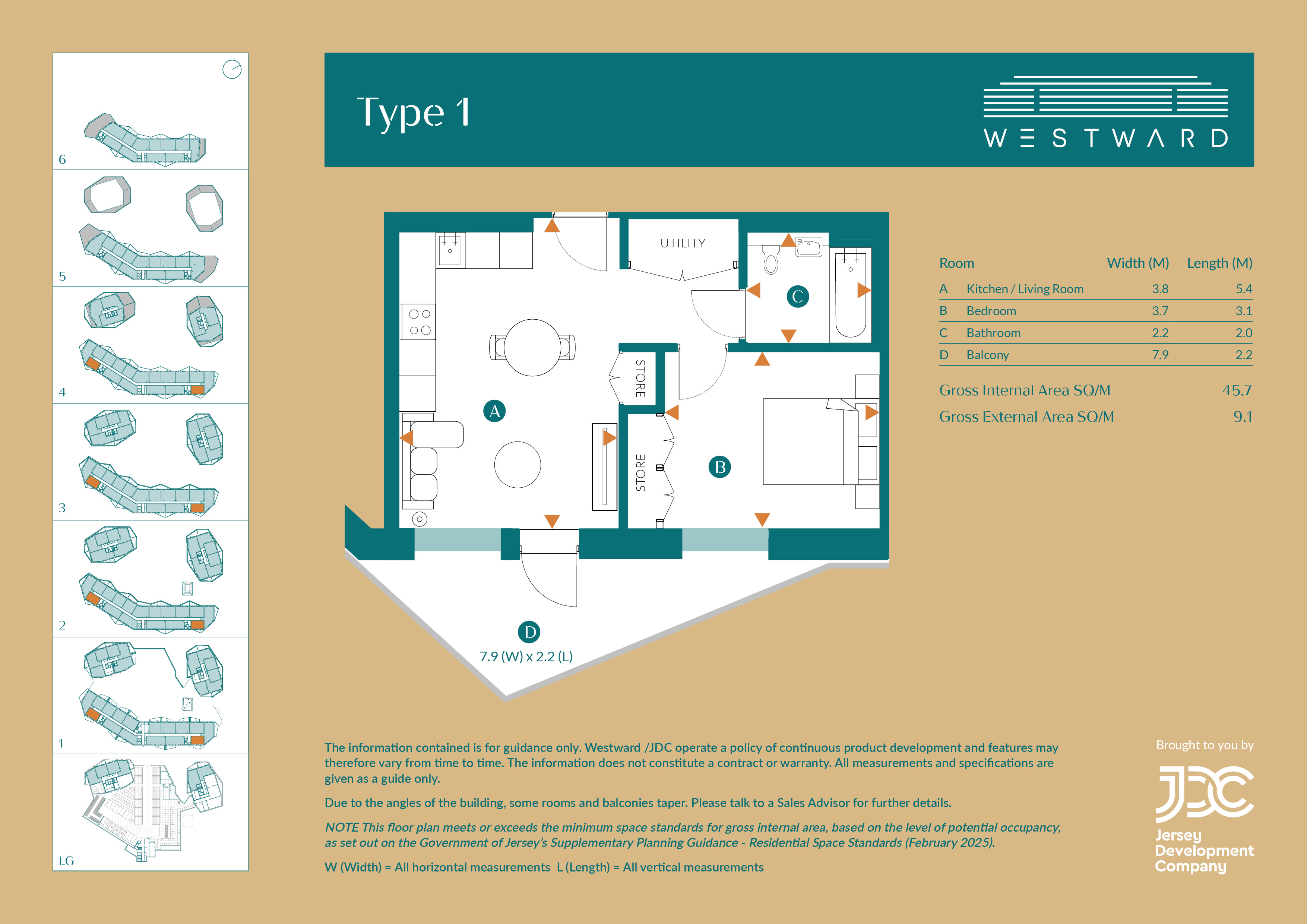 The bedroom fits a double bed and features a built-in wardrobe space. A stylish bathroom, with premium fittings and soft, neutral tones, adds a touch of everyday luxury. A dedicated utility/storage cupboard provides additional practicality, all within a highly efficient footprint.
