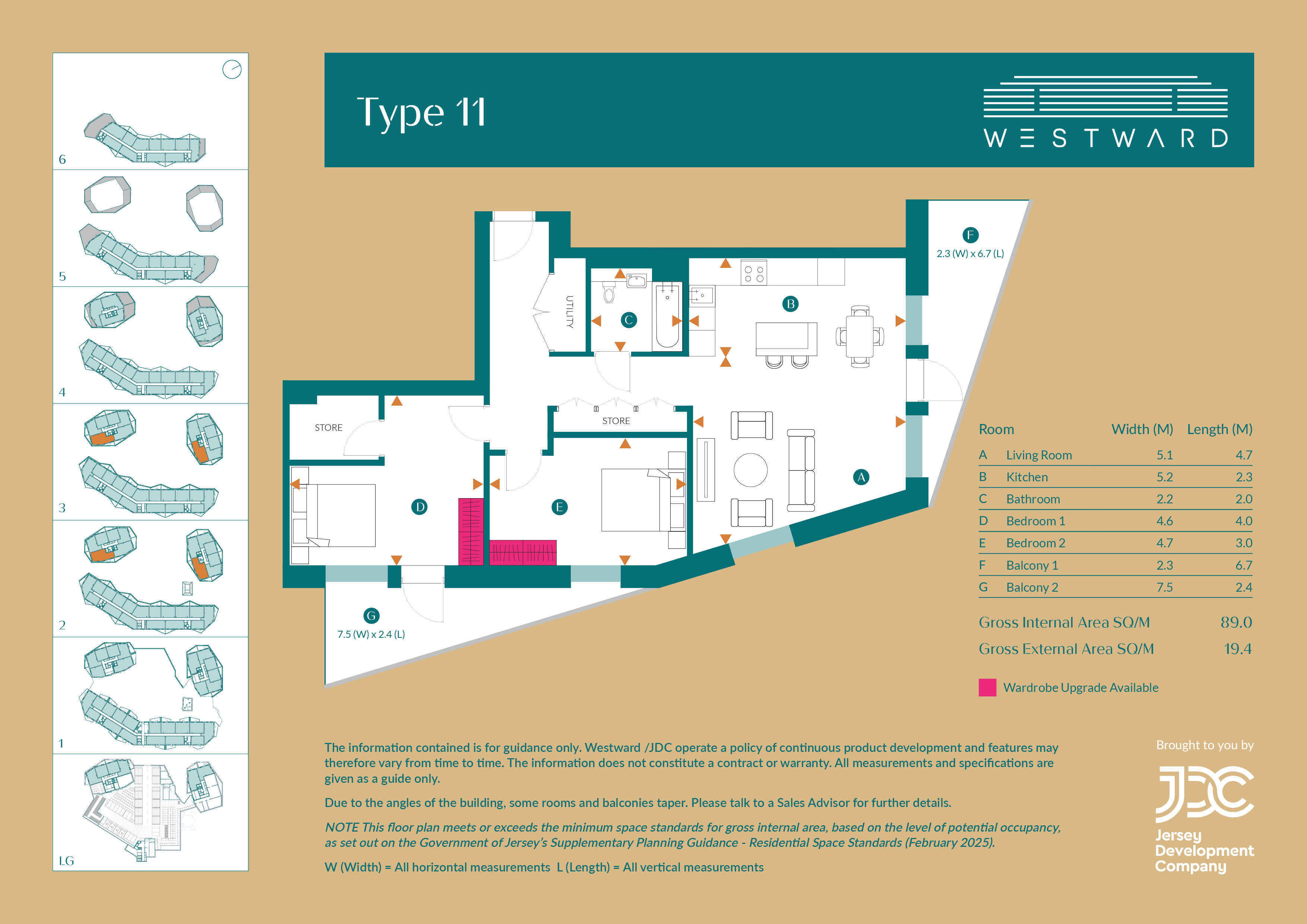 With only two apartments available, Type 11 offers an exclusive living experience in the South Pavilion. This generously sized two-bedroom home features two private balconies — one accessed from the master bedroom and the other from the living area — both overlooking beautifully landscaped gardens, providing a peaceful and green outlook.